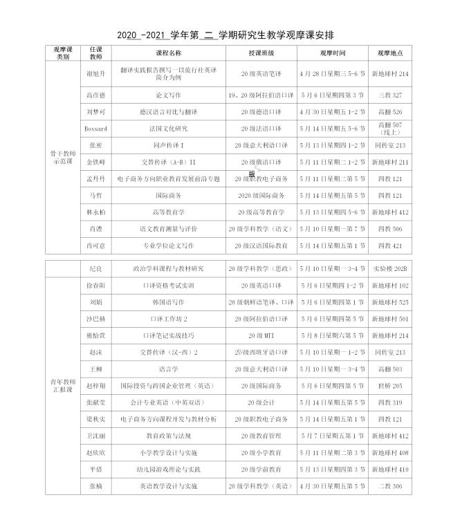 2020 -2021 學年第 二 學期研究生教學觀摩課安排