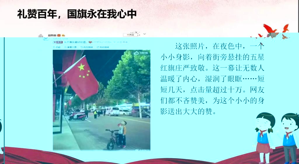 2024 年 9 月5日16:00,伟德国际1949官方网站第四黨支部在線上開展了一場意義深刻的主題學習活動,聚焦黨史人物“新中國第一面國旗從他手中誕生的曾聯松”。此次活動由組織委員孫靜媛主持,本次會議分為三個部分,引領黨員們深入感悟國旗背後的深厚曆史與偉大精神。